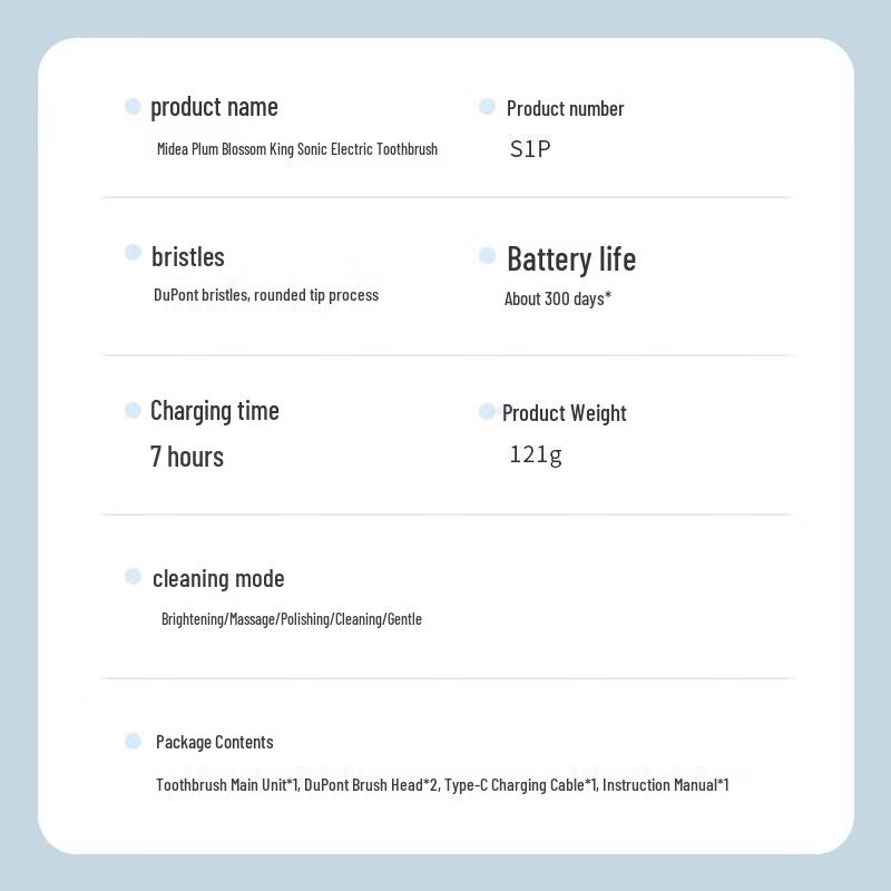 Midea S1P Sonic Electric Toothbrush with 300-Day Battery Life