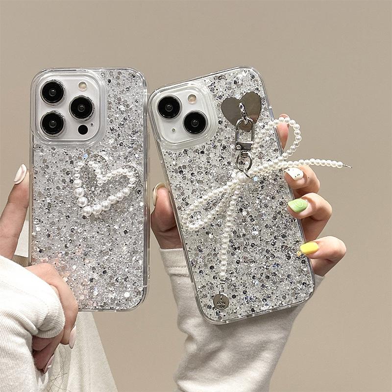 Жемчужная подвеска-бантик Любовь Чехол для телефона для IPhone16Promax Эпоксидные блестки для Apple 17 Женская модель
