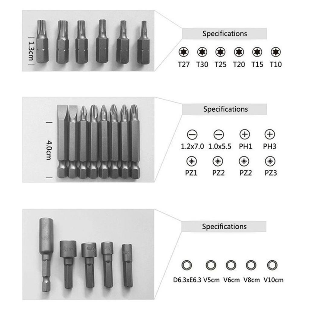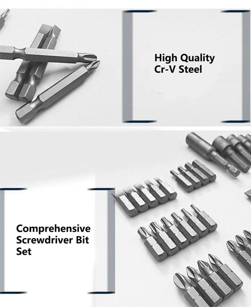 Набор из 37 предметов с насадками для отвертки и кейсом, шлицевые, крестовые, звездочки, шестигранные, квадратные, для закручивания гаек, для сверления дерева, металла, цемента
