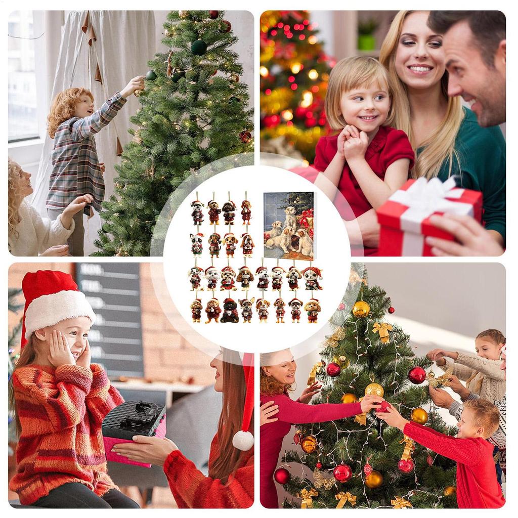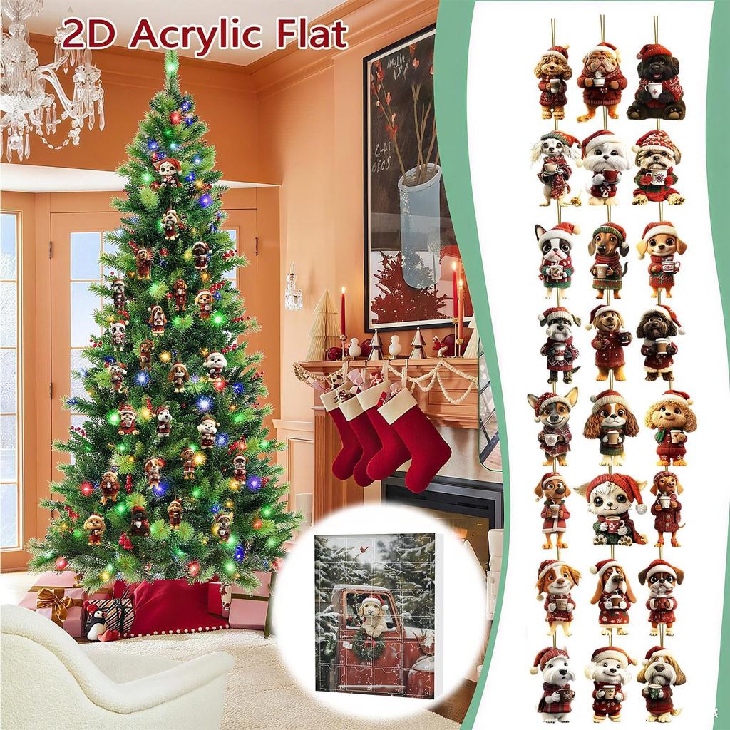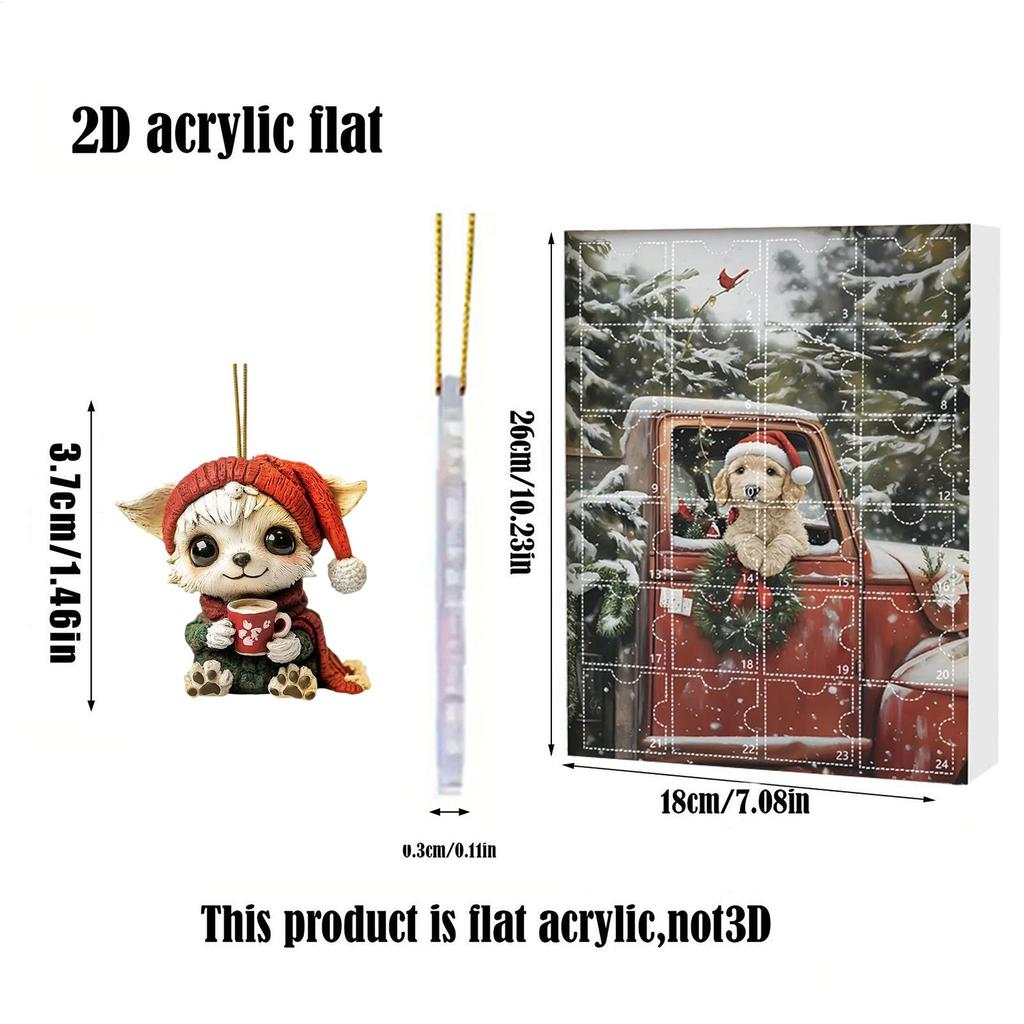 Календарь обратного отсчета до Рождества для собак, 24 дня, акриловые украшения, шарм «Собака пьет кофе», адвент-календарь, подарок для любителя питомцев, рождественский декор