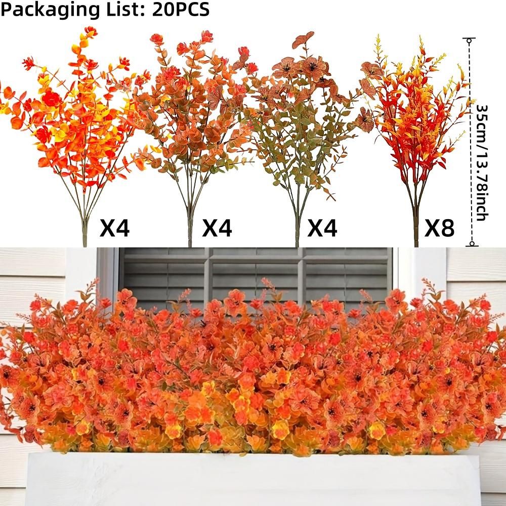 20PCS UV-Resistant Artificial Fall Flowers Outdoor/Indoor - Low-Maintenance Fall Decorations, Fall Decorations for Home