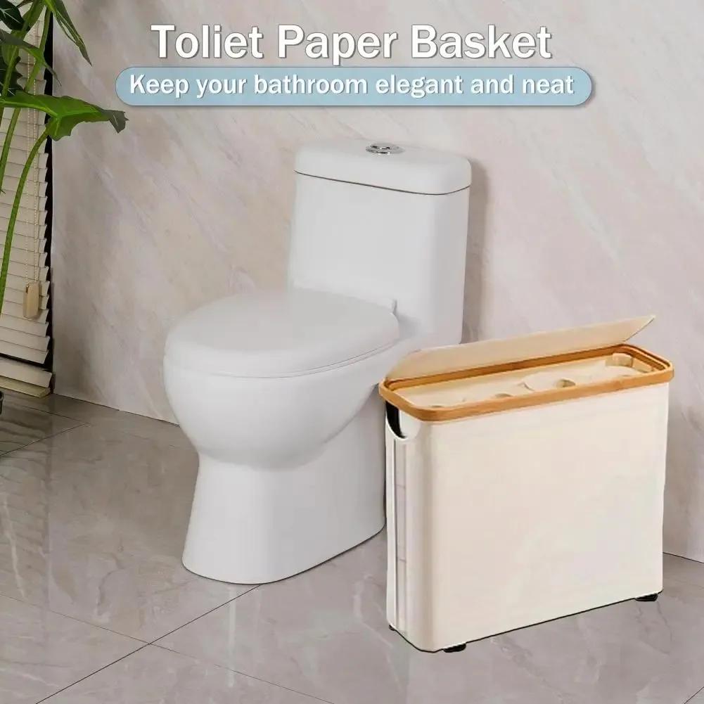 Бамбуковый контейнер для хранения туалетной бумаги с крышкой, дышащий дизайн, большой органайзер для ванной комнаты, держатель для туалетной бумаги