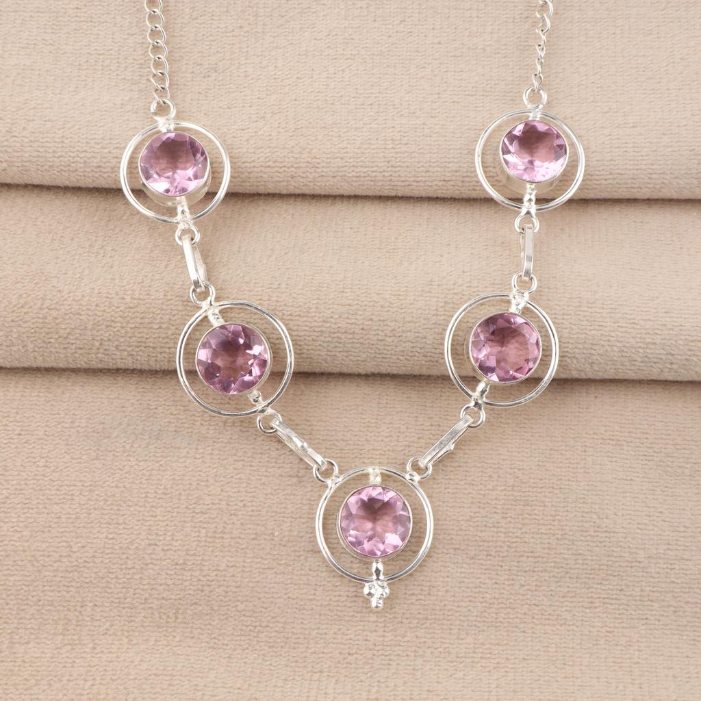 Розовый Морганит Драгоценный Камень Серебряное Ожерелье, Серебро 925 пробы Женское Ожерелье, Морганит Серебряные Украшения, Подарок Камень Июня RN-2-15