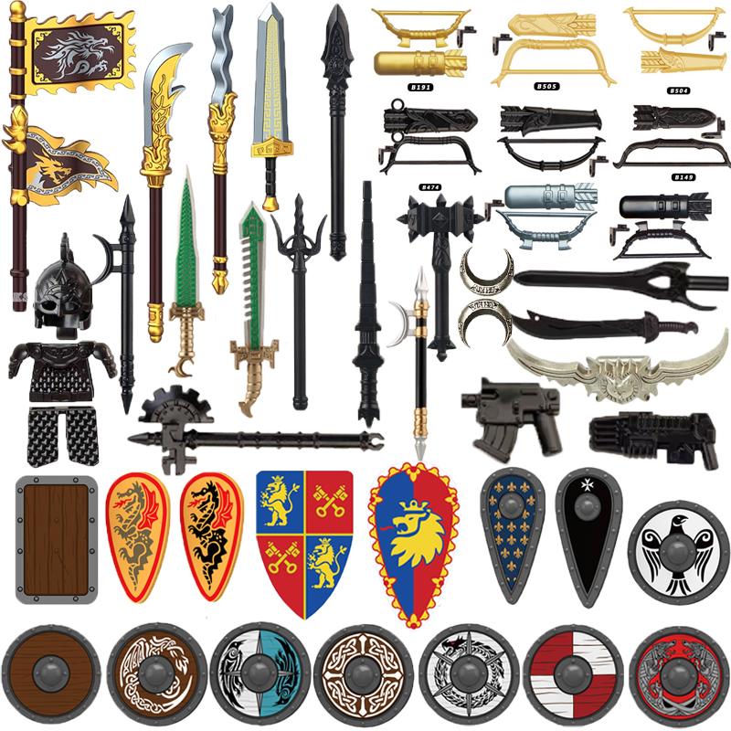 MOC Средневековые Строительные Блоки Персонаж Рыцарь Воин Набор Аксессуаров Шлем Наплечники Щит Лук Стрела Кирпич Подарок Игрушка X022 — купить товар онлайн с бесплатной доставкой по всему миру!