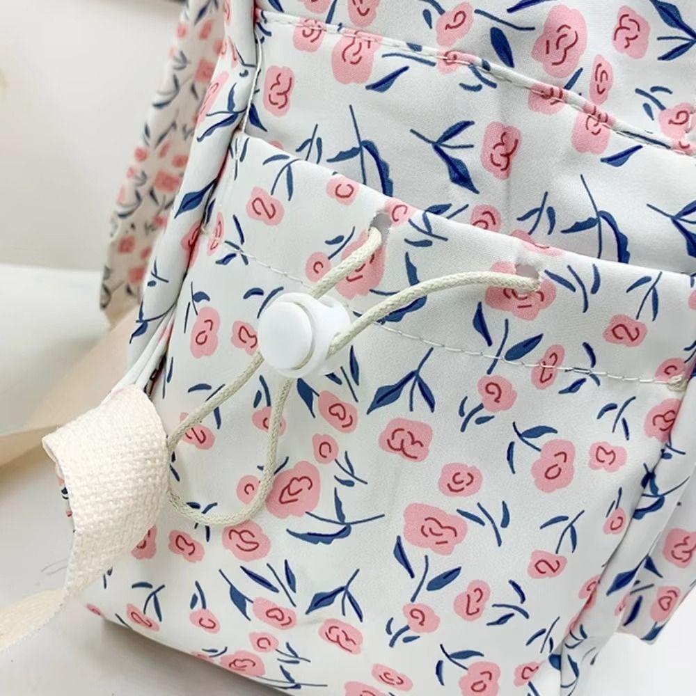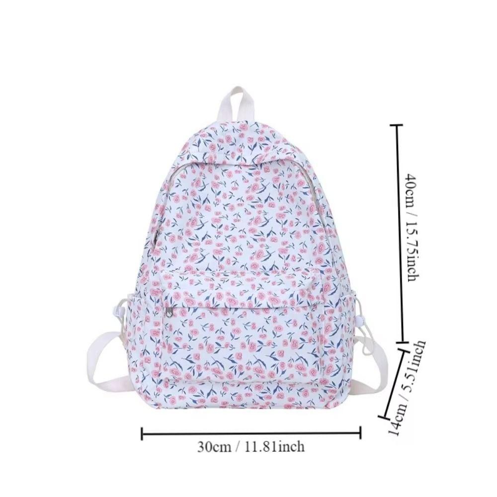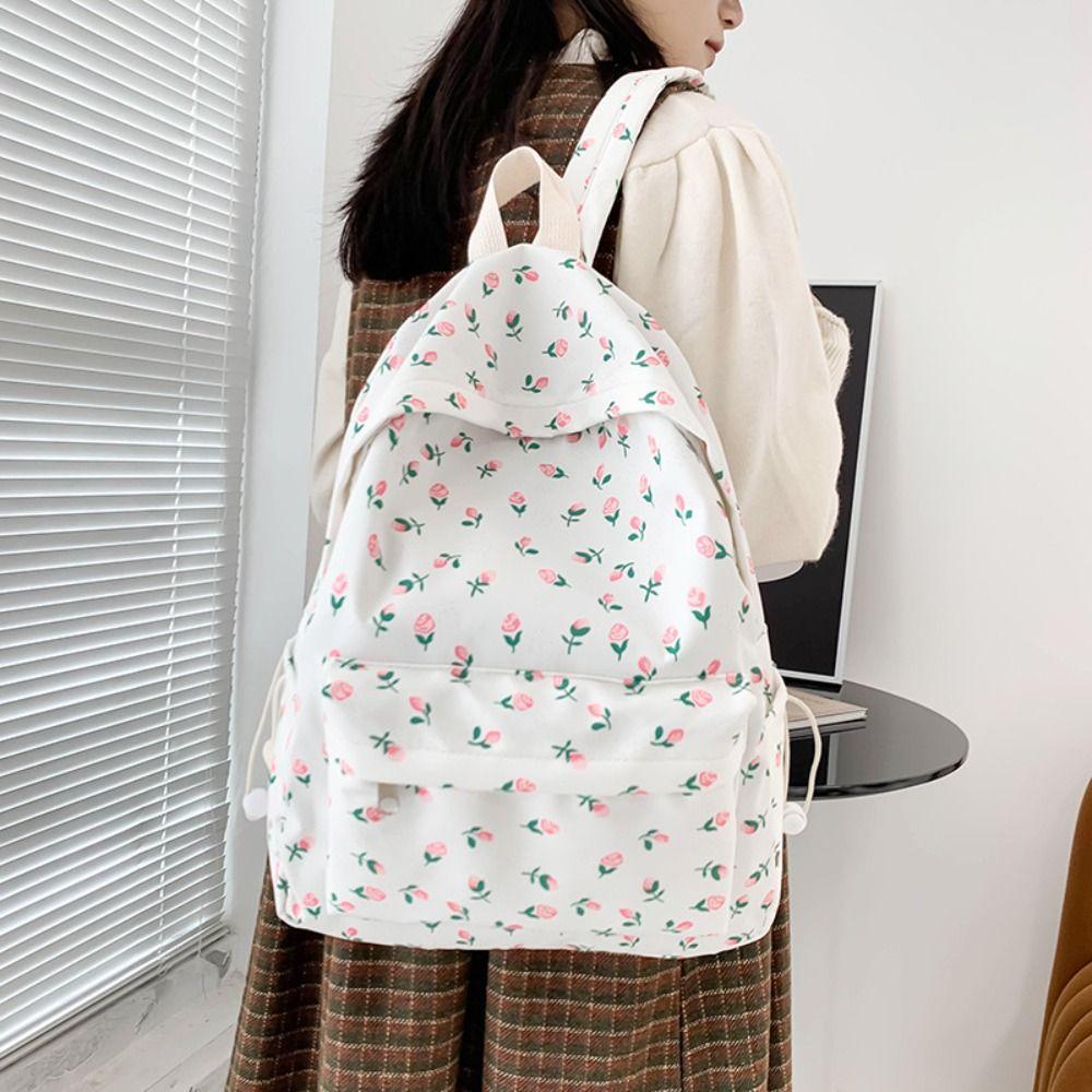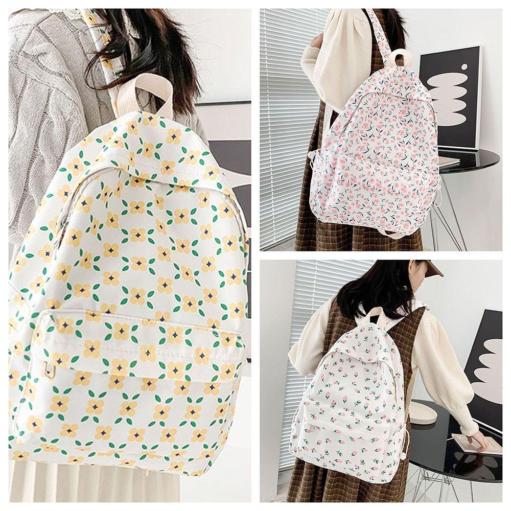 Aesthetic Students Backpack Nylon Shoulder Bag Large Capacity Floral School Bag Textbook