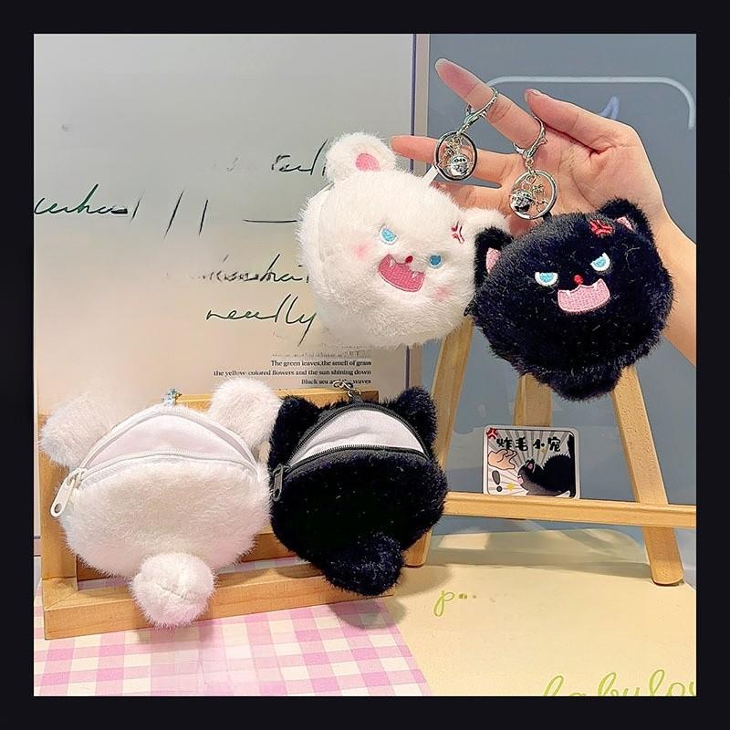 Этот плюшевый кошелек-брелок имеет пушистый мультяшный дизайн кошки, изготовленный из мягкой, прочной полиэстеровой ткани. Он включает прочное металлическое кольцо для надежного крепления и доступен в черном и белом цветах.. Идеально для ежедневного использования, сочетает функциональность с игривым стилем. Для сохранения внешнего вида протирайте влажной тканью.
