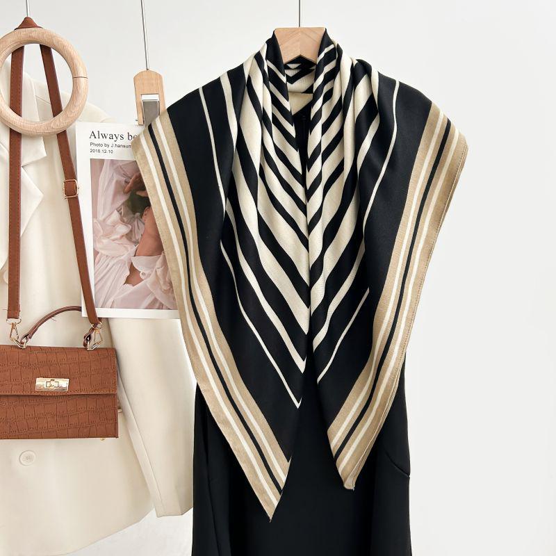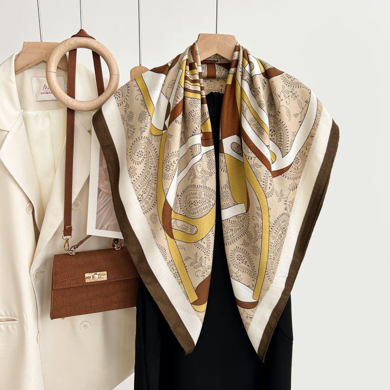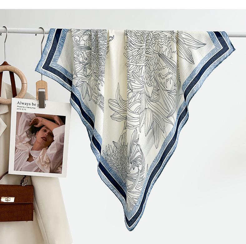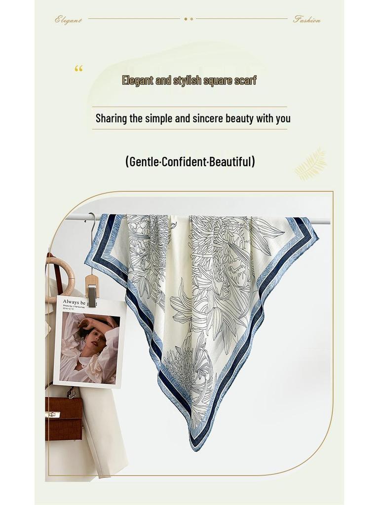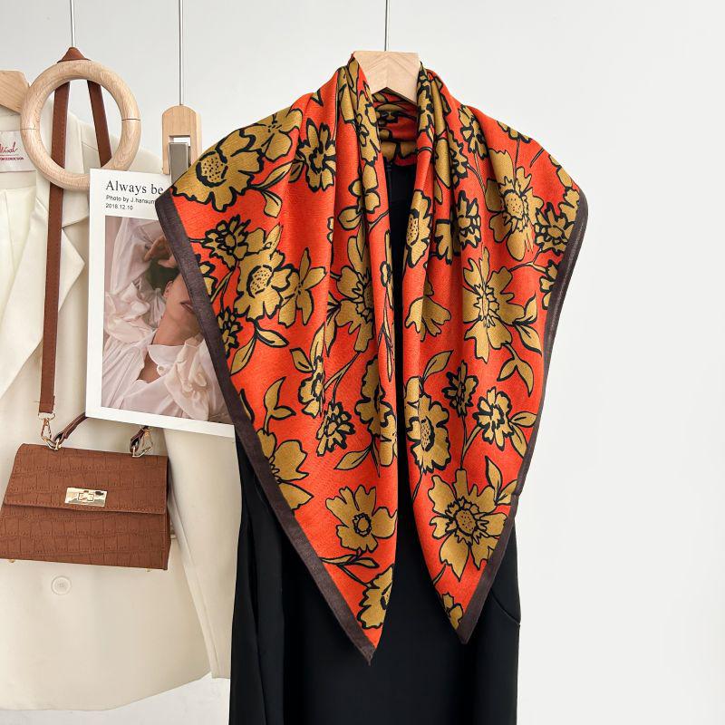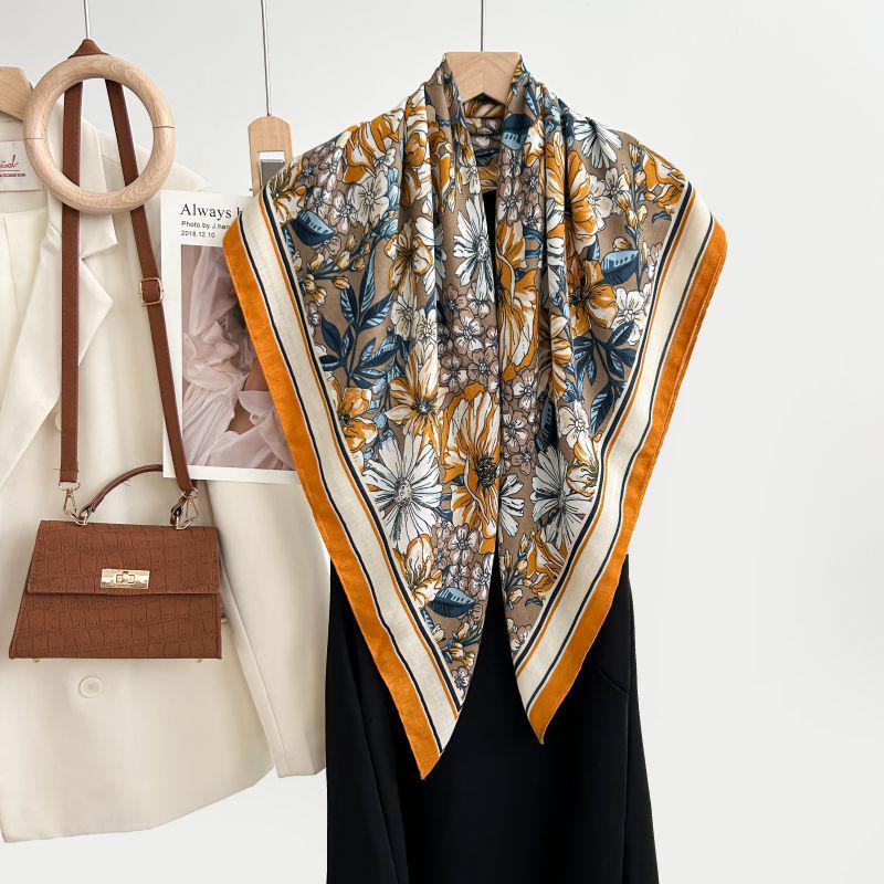 Квадратный шарф в корейском стиле с белым цветочным принтом - Мягкий, элегантный, приятный к коже, теплый шарф-палантин в елочку для осени и зимы