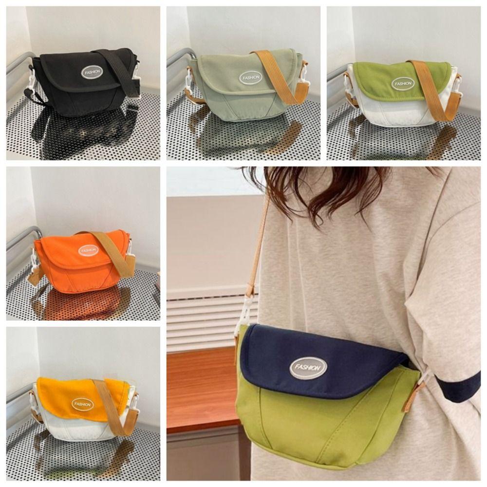 Solid Color Canvas Crossbody Bag Korean Style Dumplings Bag Portable Sports Shoulder Bag Student