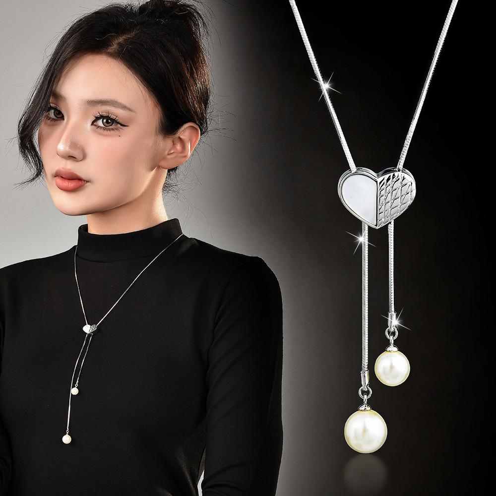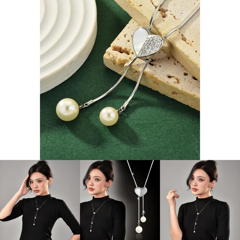 Элегантный дизайн: Потрясающий длинный дизайн в форме сердца в сочетании с жемчужными акцентами делает это ожерелье идеальным дополнением к гардеробу любой современной женщины.