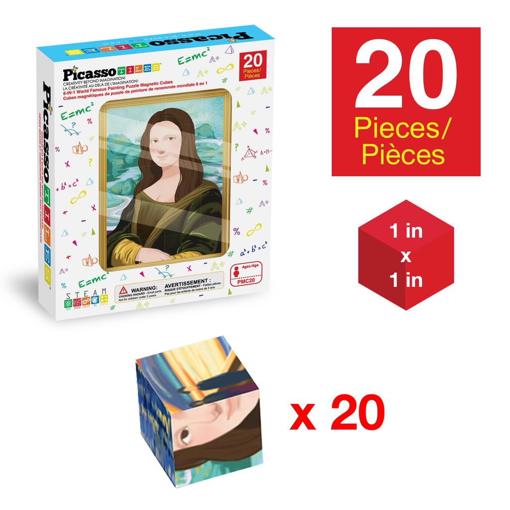 PicassoTiles 1-inch Magnetic Puzzle Building Cube Blocks for Kids, Van Gogh Puzzle, Mona Lisa Hand Puzzle, Kids Toys for Boys and Girls Ages 6+, STEM