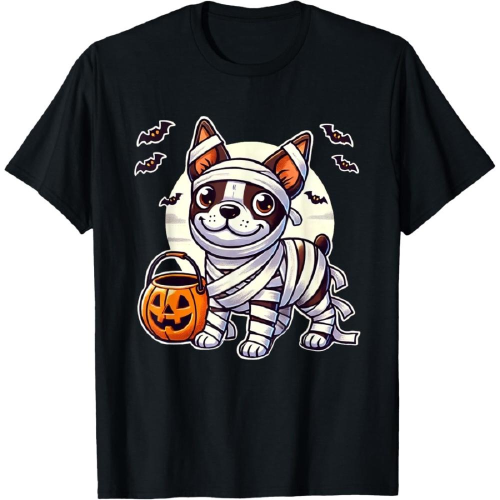 Бостон-терьер Хэллоуин Мумия Милая футболка с бостон-терьером
