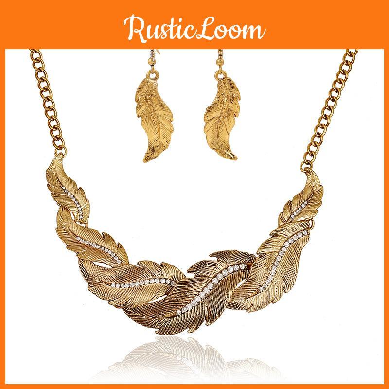 Модный набор женских золотых ожерелья и серег с украшением из стразов и перьев для подарков и сувениров из путешествий