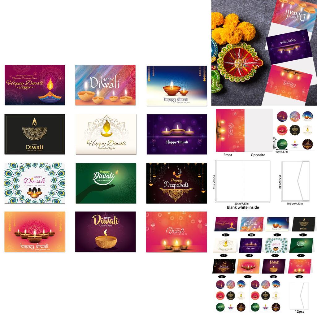 Набор поздравительных открыток к фестивалю Дивали с конвертами и наклейками для домашнего декора