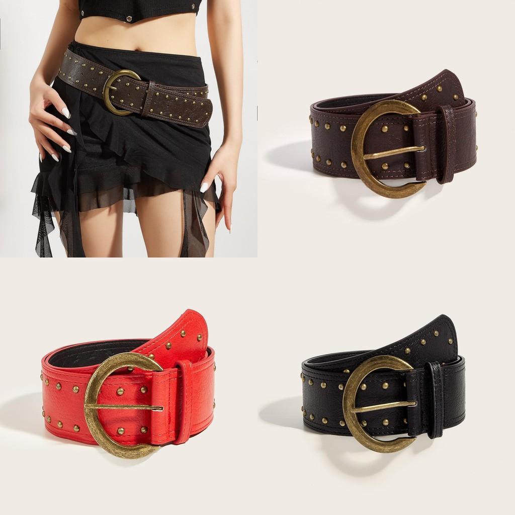 Панк Стиль Кожаный Ремень с Заклепками и Пряжкой из Сплава для Повседневных Модных Аксессуаров