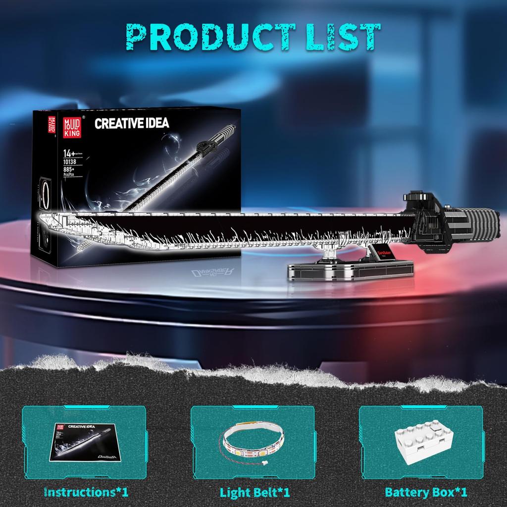 Mold King 10138 Набор строительных блоков Technik Darksaber, Строительные блоки модели MOC Светового меча, Светящаяся и перезаряжаемая игрушка для ролевых игр для детей и