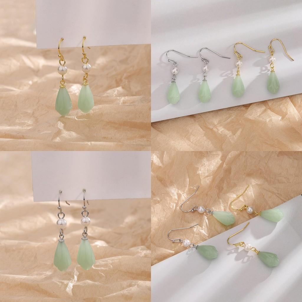 Винтажные жемчужные медные серьги для женщин в стиле ретро, женские серьги-капли с нефритовым узором в виде цветка лотоса.