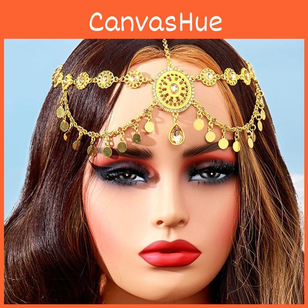 Арабское Свадебное Украшение для Волос Золотой Сплав Филигрань Кристалл Подвеска Повязка на Голову для Особого Случая