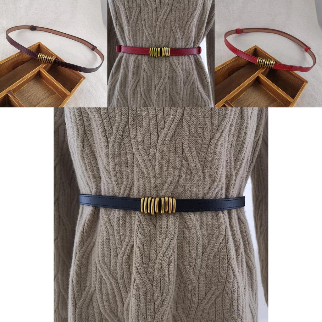 Женский кожаный пояс для летних нарядов, тонкий дизайн с пряжкой из сплава, для платья и уличного стиля