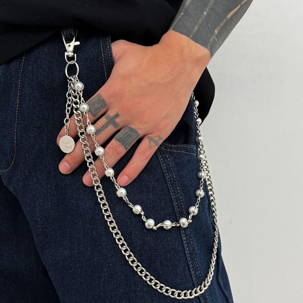 Turquoise Pearl Waist Chain Tassel Pants Chain Goth Punk Belt Chain Male