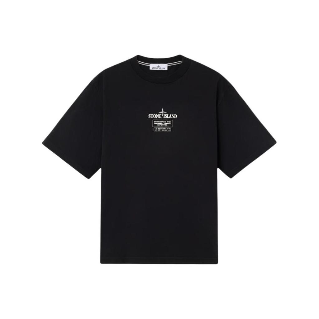 STONE ISLAND Однотонная футболка с круглым вырезом, спущенным плечом и коротким рукавом, мужские топы, черный K2S152100037S0193-V0029