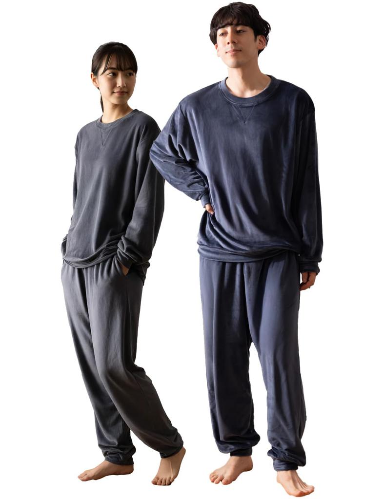 [Унисекс домашняя одежда с глянцевым покрытием и гладкой текстурой] Эта велюровая домашняя одежда отличается легким блеском и гладкой текстурой. Его тепло и мягкость создают ощущение, будто вас завернули в одеяло, создавая комфортную обстановку для отдыха осенью и зимой.. Он легкий и в нем легко двигаться, и разработан так, чтобы быть удобным даже при длительном ношении.. Это универсальная домашняя одежда, которую можно носить как пижаму для поддержки хорошего ночного сна или как повседневную одежду для коротких прогулок или небольших поездок.