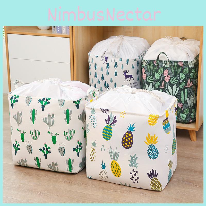 Компактная нетканая корзина для белья со шнурком для хранения в спальне и одеял