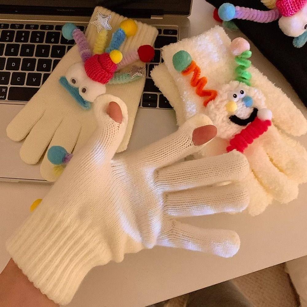 1Pair Soft Women's Gloves Cute Funny Cycling Cold Protection Gloves Warm Knitted Gloves