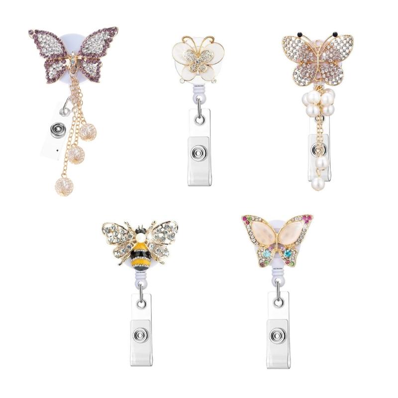 Adjustable 60cm Butterfly Bees Rhinestones Id cards Holder Secure Clip for Workplaces Professional Office Accessories