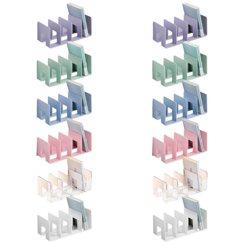 2Pcs Desk Bookend Acrylic Book End 4 Section Book Organizers Stand Magazine Stand Space Saving Shelf Bookend 32x14x13cm
