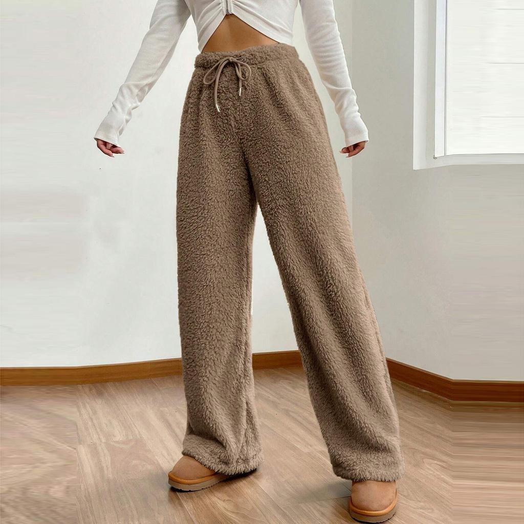Женские модные плюшевые повседневные брюки однотонные свободные удобные плюшевые теплые брюки
