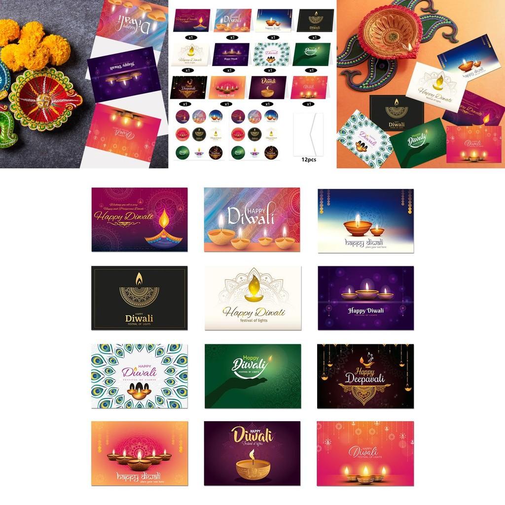 Набор поздравительных открыток для празднования Дивали с конвертами и декоративными наклейками для праздничных мероприятий