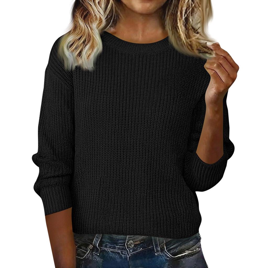 Женский модный пуловер с длинными рукавами, однотонный, с вырезом, утолщенный, оверсайз, свободного кроя, вязаный свитер