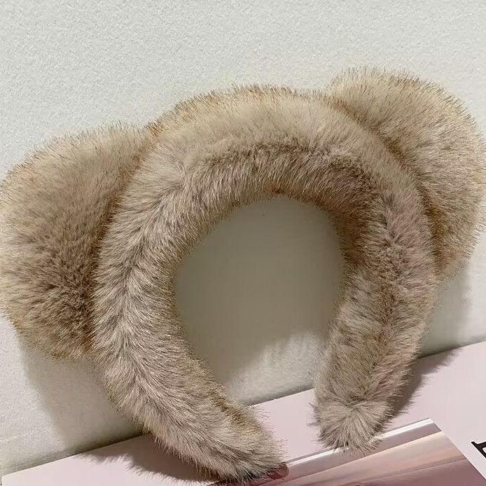 Милая плюшевая повязка на голову с медвежьими ушками, с широкими полями, для женщин, идеально подходит для осени и зимы.