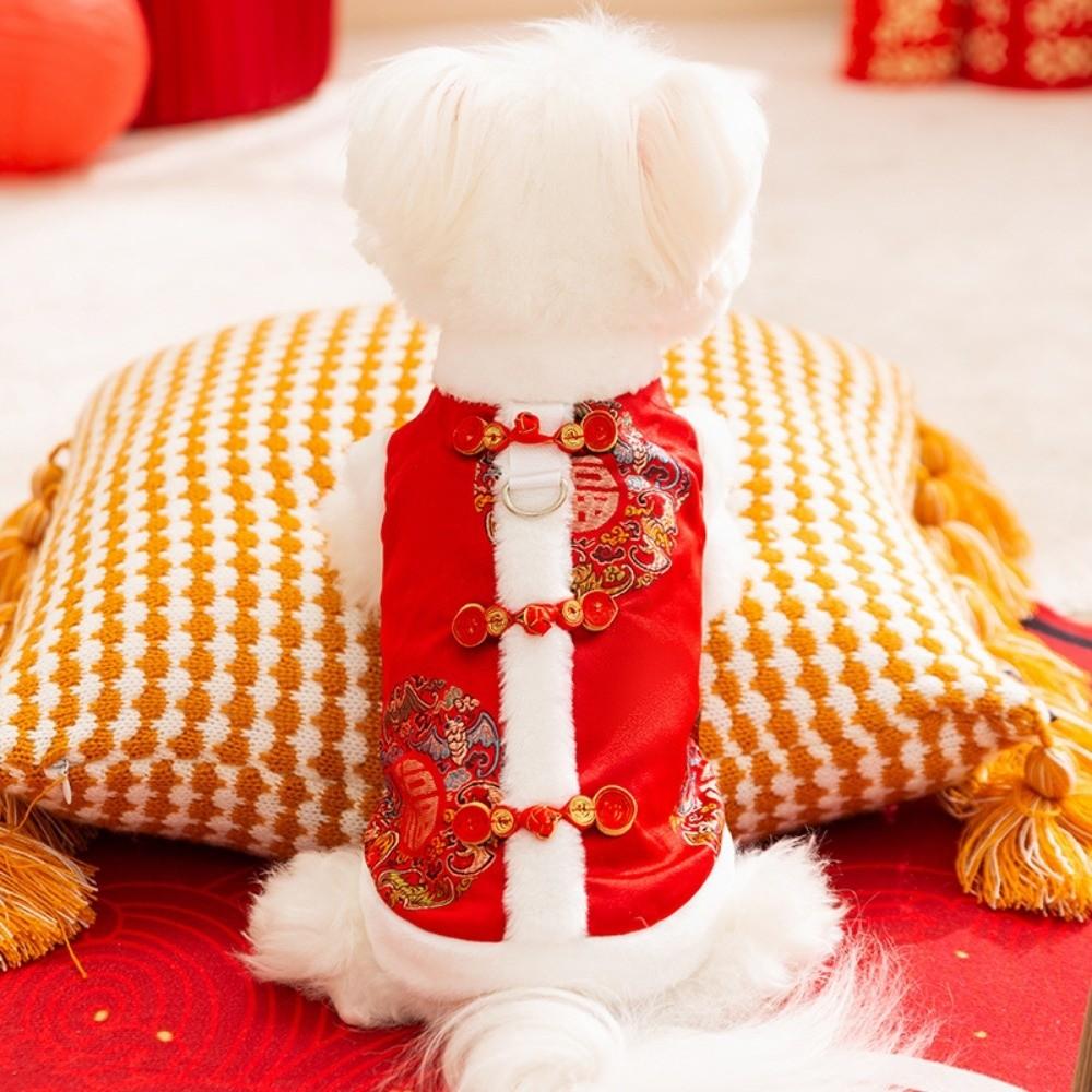 Красный Костюм Тан для Питомца Узел Пуговица Пальто для Кошки Одежда для Котенка Жилет для Собаки Праздник Весны