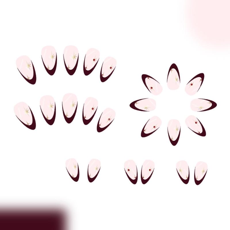 Короткий миндалевидный накладной ноготь, 24 шт. винно-красный искусственный ноготь 12 размеров, глянцевый накладной ноготь, акриловый самоклеящийся ноготь для женщин