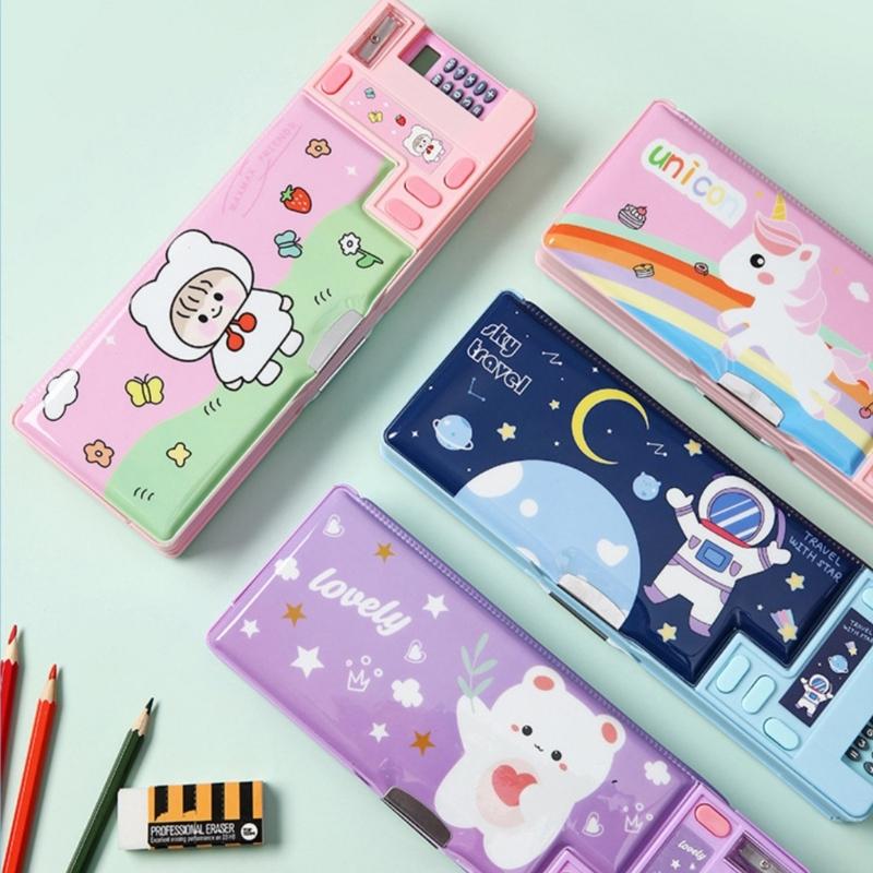 Многофункциональный пенал с калькулятором и точилкой, пенал большой вместимости, мультяшный пенал-подставка для ручек для ученика, мальчика, девочки, ребенка