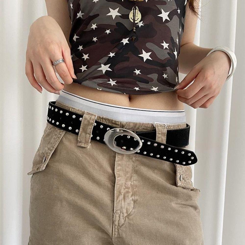 Retro Suede Rivet Belt Luxury Design Punk Waistband Business Waist Belt Paired with Skirts Jeans