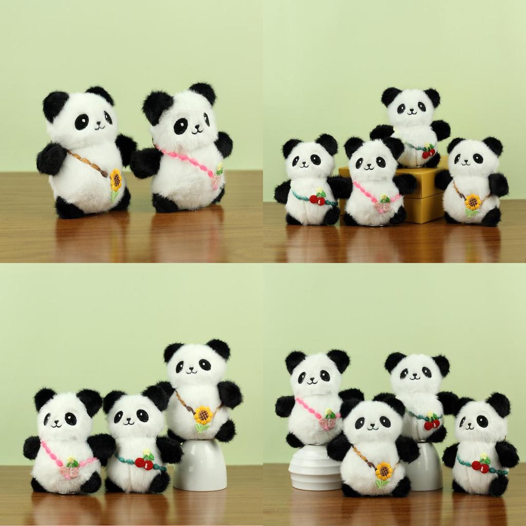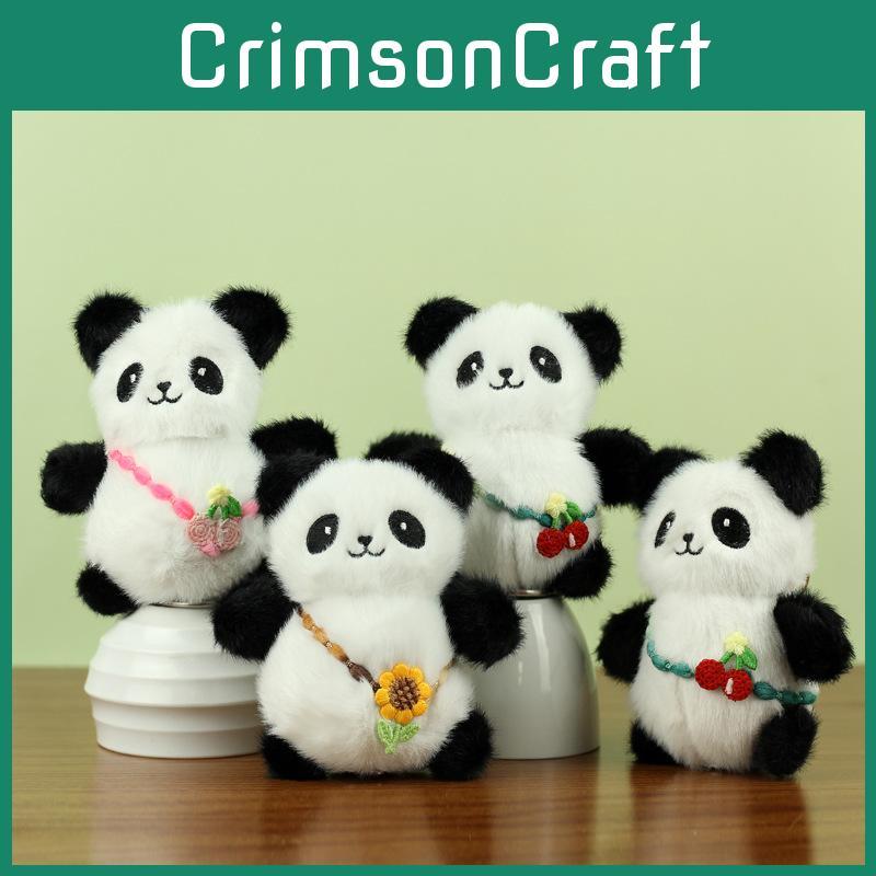 Sweet 12cm Plush Panda Keychain Hanging Accessory With Beautiful Flower Embellishments