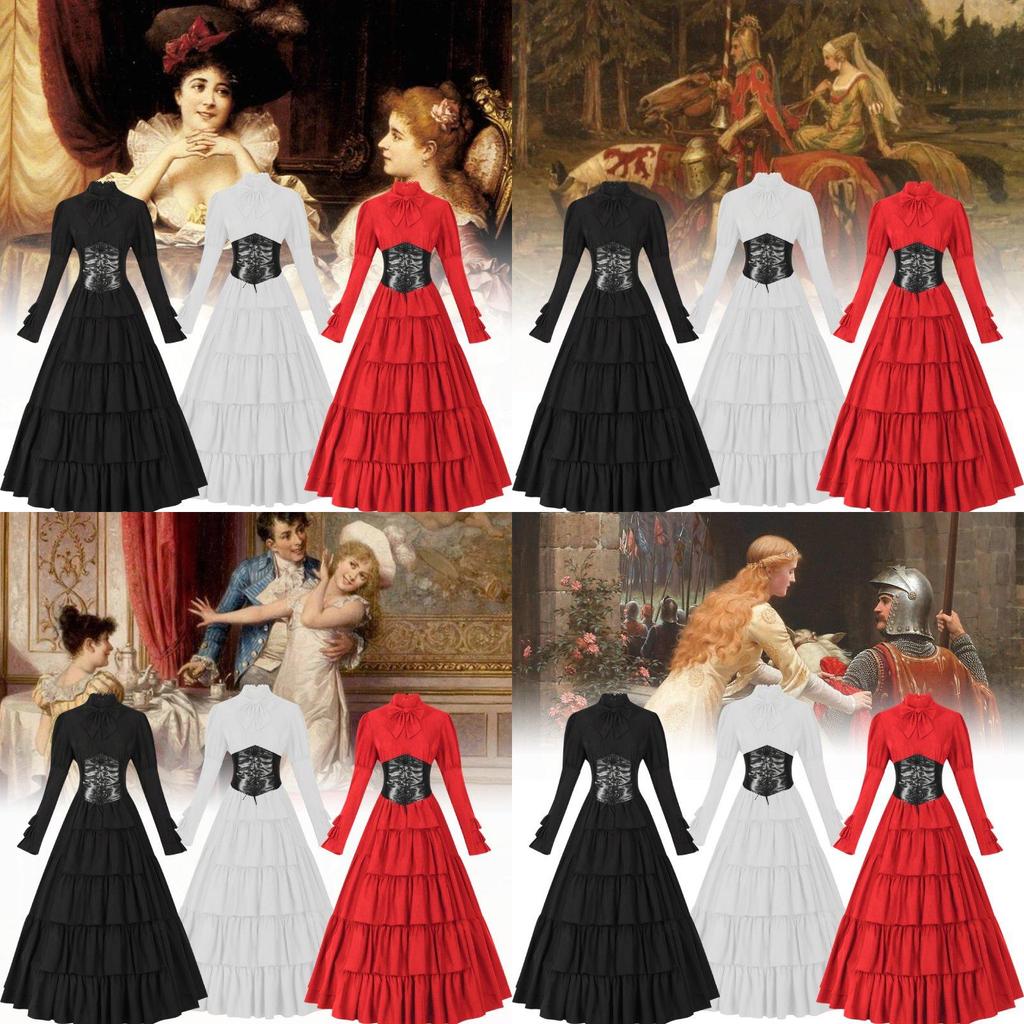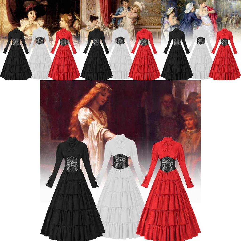 Шикарное длинное платье в стиле Ренессанс для женщин, идеально подходящее для Хэллоуина и тематических вечеринок