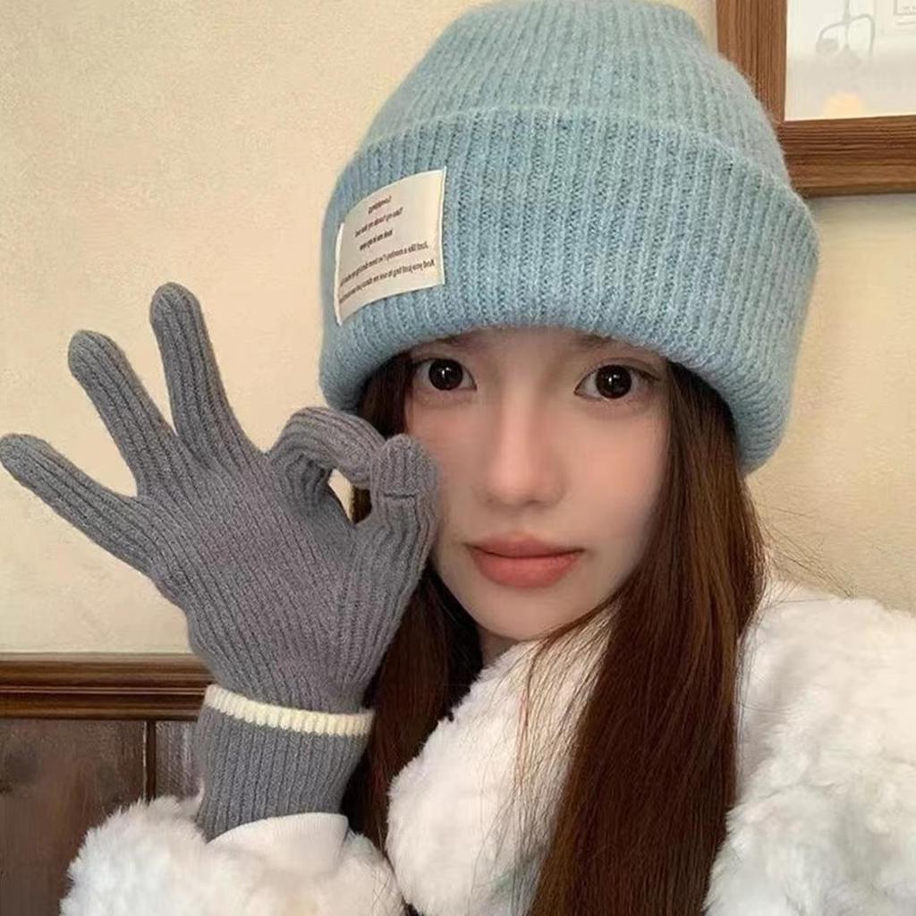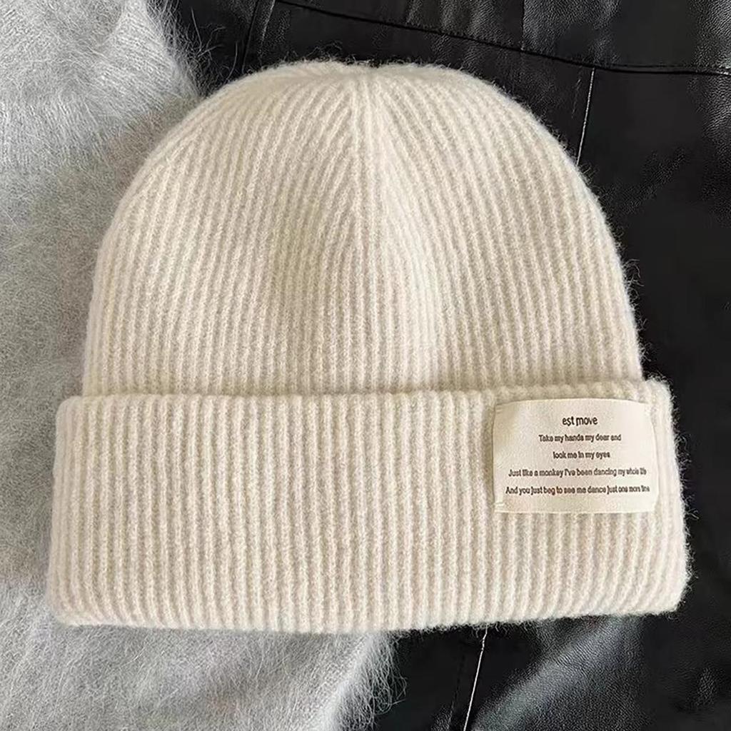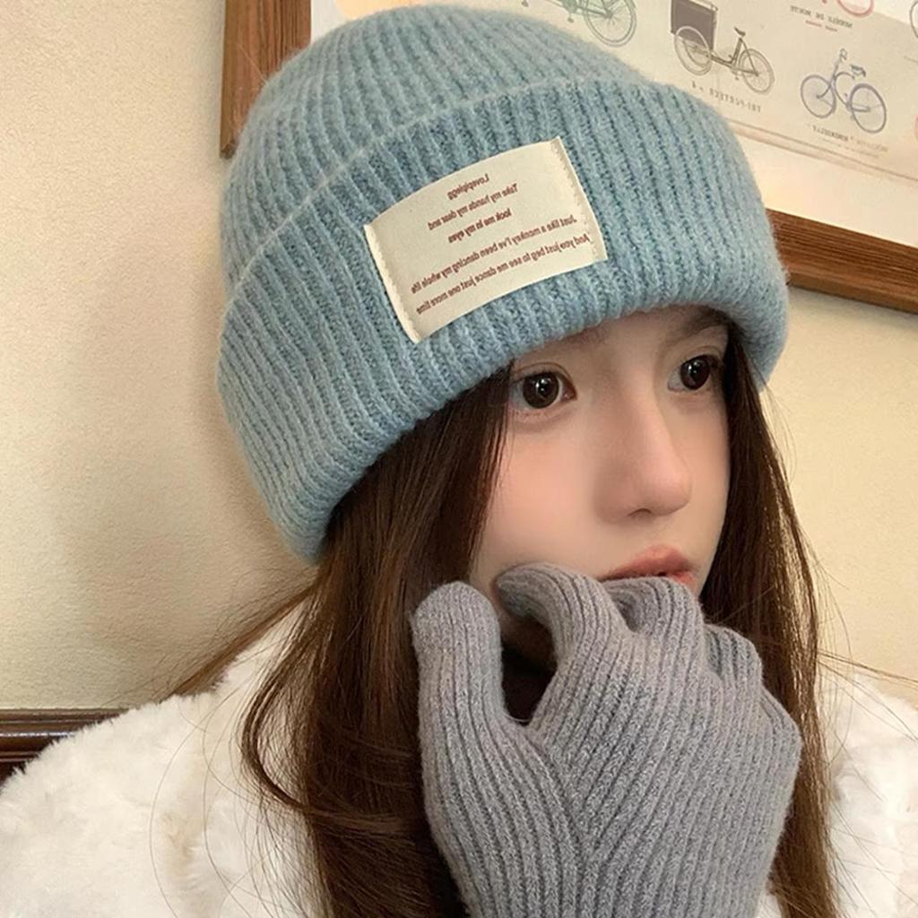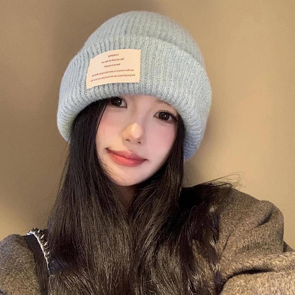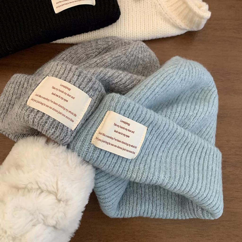 Женская шерстяная вязаная зимняя утолщенная шапка однотонная с надписью бини шапка-чулок корейская девушка грелка для ушей защита от холода шапка-пуловер