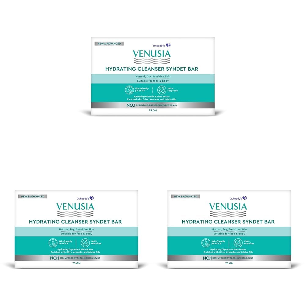 Доктор. Reddy's Venusia Увлажняющее моющее средство-брусок Syndet 75 г Упаковка 3 шт. Мягкое средство для умывания лица без мыла