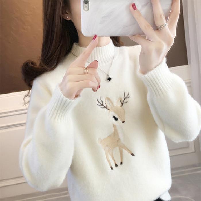 Свитер с высоким воротником и рисунком оленей, милый осенне-зимний свитер с длинным рукавом, женская одежда — купить товар онлайн с бесплатной доставкой по всему миру!