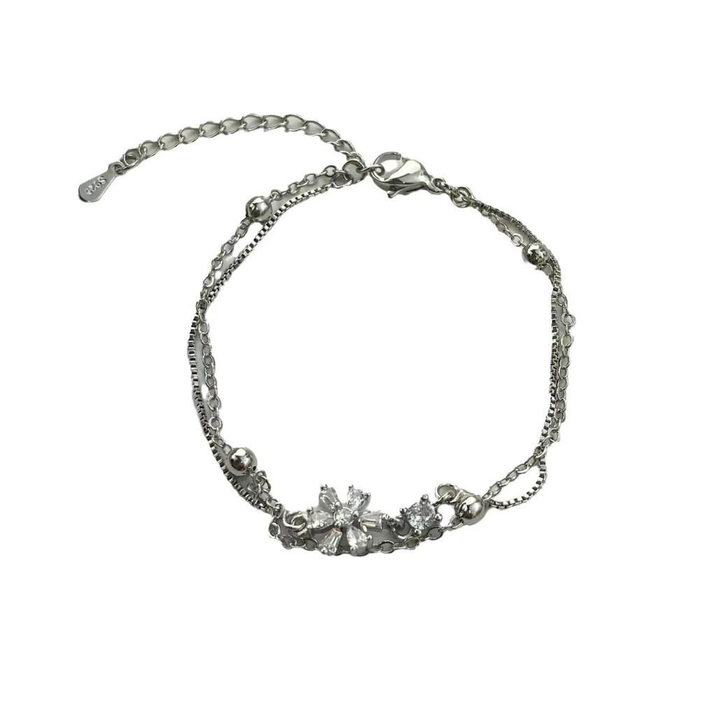 Элегантный браслет «Свежий расцвет» в два ряда для женщин, изготовленный из меди и циркона
