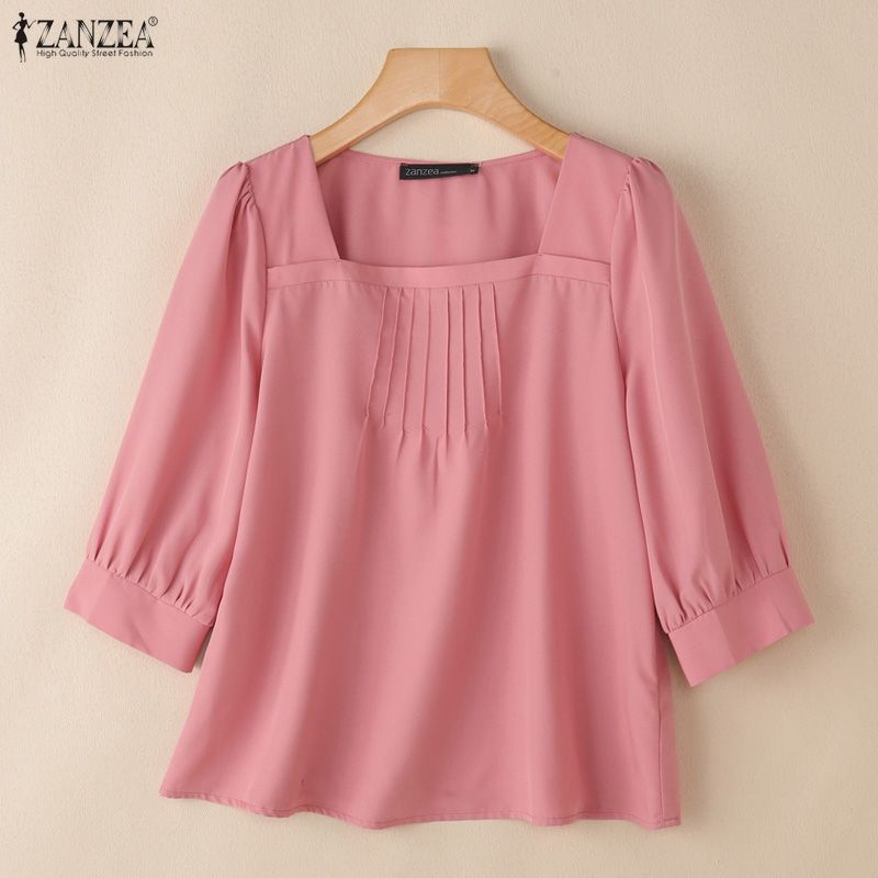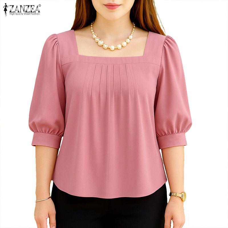 ZANZEA Женская летняя повседневная блузка с квадратным вырезом и рукавами 3/4, однотонная