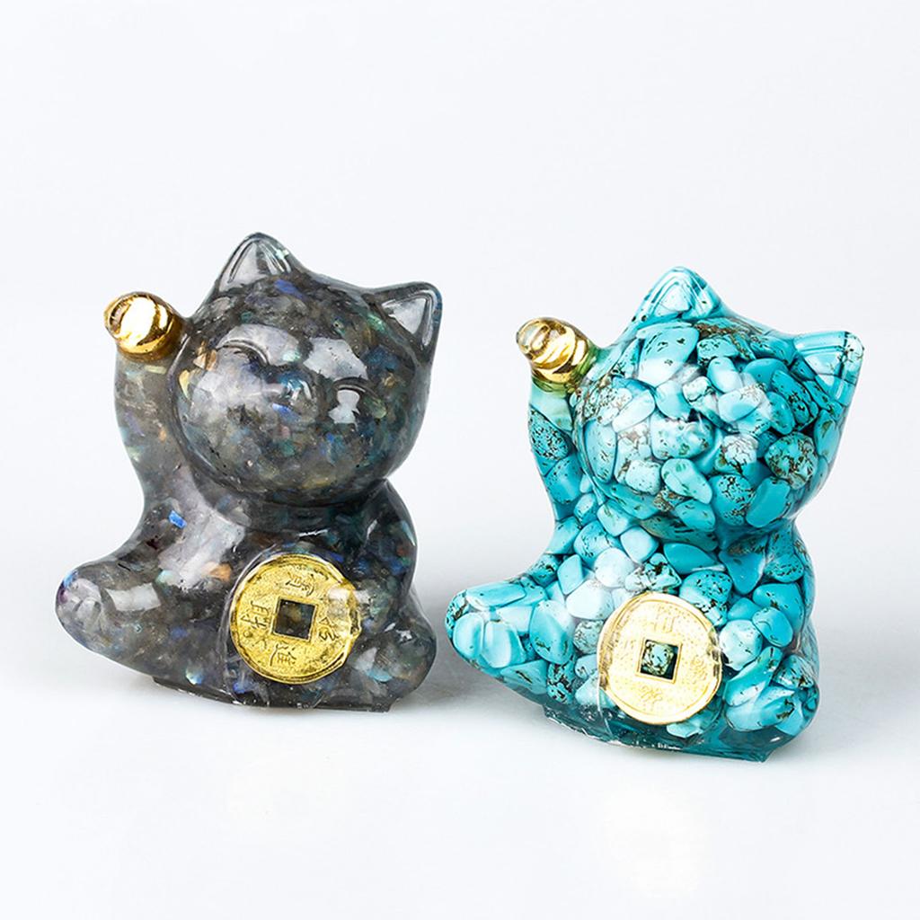 Mini Fortune Cats Statue Decor Crystal Epoxy Resin Cat Statue Attract Good Luck Money Wealth Gift for Men Women Desk Figurines