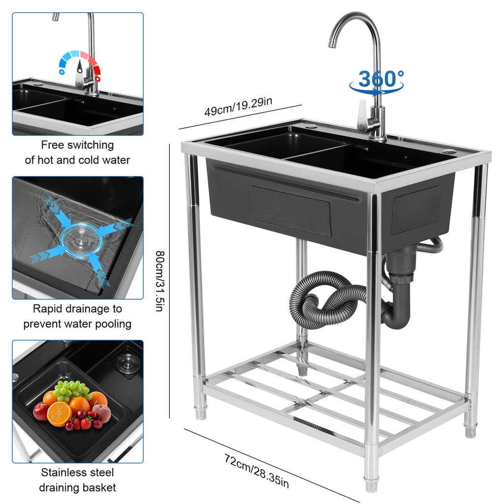 Многофункциональная раковина из нержавеющей стали 304 с регулируемыми ножками, подставкой, смесителем, сливным комплектом для гаража, кухни, прачечной, ванной комнаты