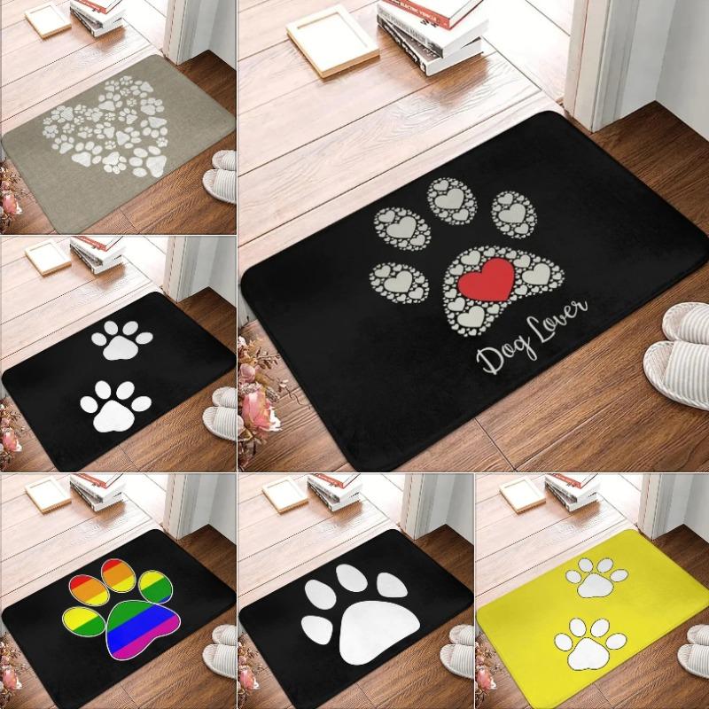 Сердце Любителя Собак Отпечаток Лапы Красное Сердце в Центре Нескользящий Машинная Стирка Пушистый Плюшевый Входной Коврик Домашний Декор Владельца Питомца Ковер