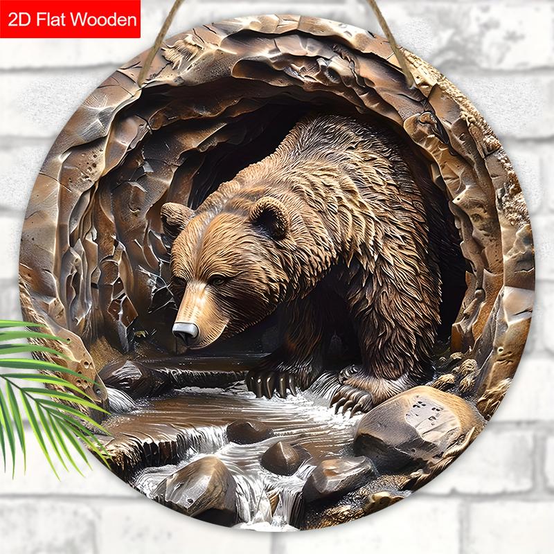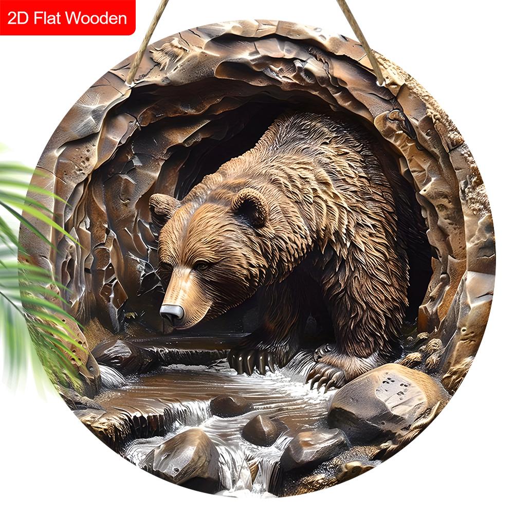 Деревянная табличка в деревенском стиле с изображением медведя — очаровательная круглая табличка для входной двери, настенное украшение — идеальный подарок для друга.
