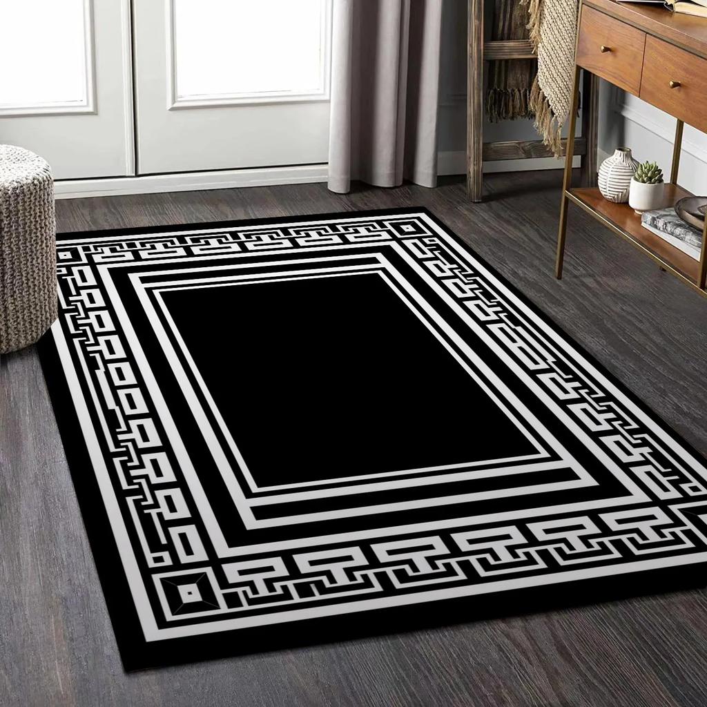 Роскошный ковер для гостиной Современный черно-белый геометрический Нескользящий коврик для лаунжа Мягкие ковры Декорация Дом Спальня Пол Придверный коврик