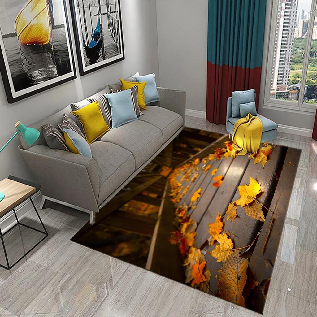3D Осенний Желтый Ковер из Кленовых Листьев Современный Кухонный Коврик для Ванной Противоскользящий Входной Коврик Ковер для Спальни Гостиной Балкона